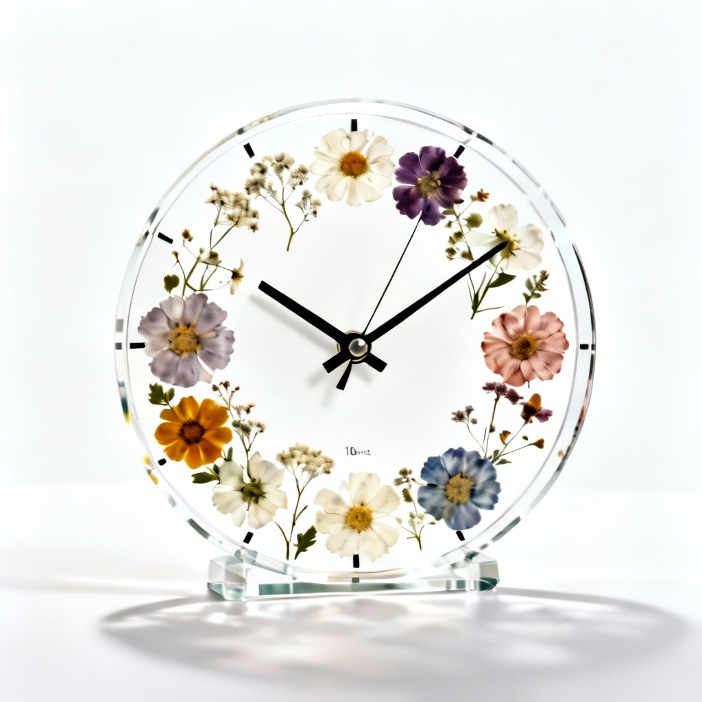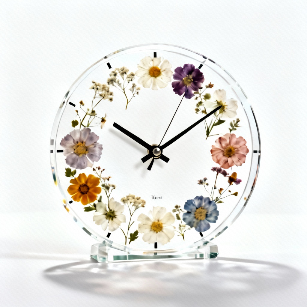 Acrylic Wall Clock with Embedded Pressed Flowers – 10 Inch