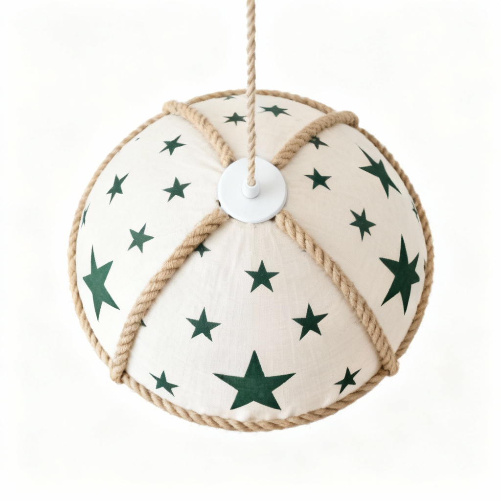 Fabric Shell Pendant Light with Cotton Rope Accent – Holiday Star Design