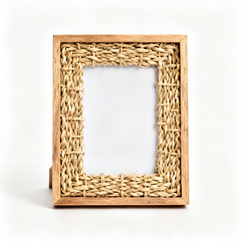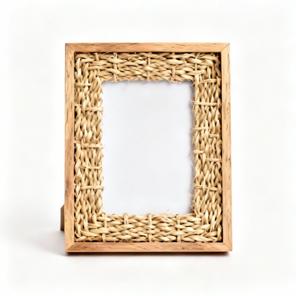 Natural Wood & Seagrass Accent Picture Frame – 5×7 Inch
