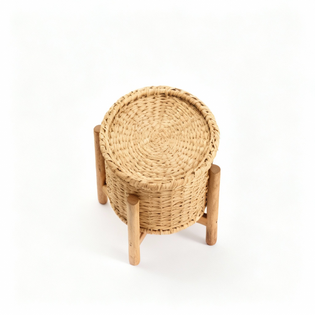 Rustic Wood & Seagrass Tiered Plant Stand - 3-Tier Display