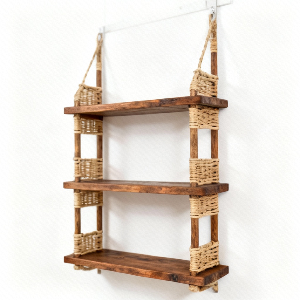 Be the first to review “Rustic Wooden Wall Hanging Shelf with Rattan Accents” Cancel reply