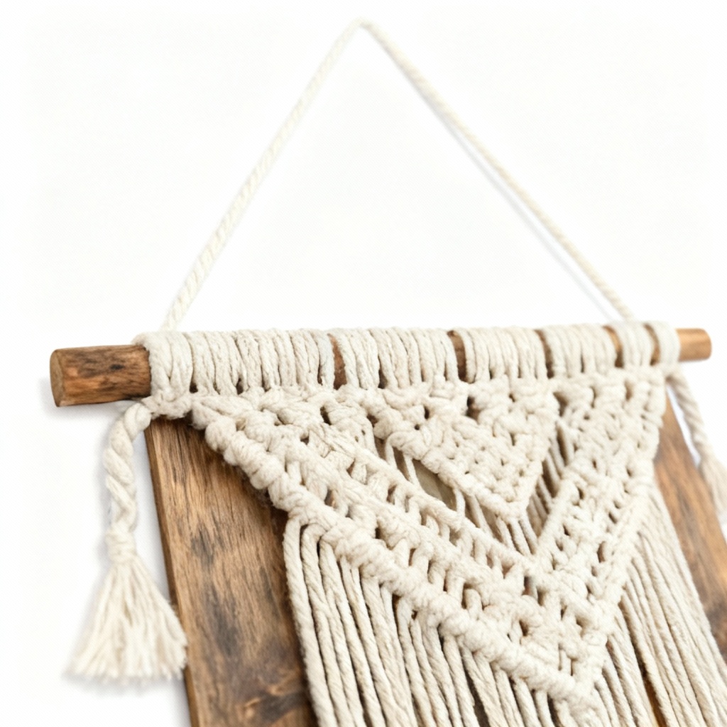 Rustic Wooden Wall Hanging with Macrame Accents – 12×24 Inches