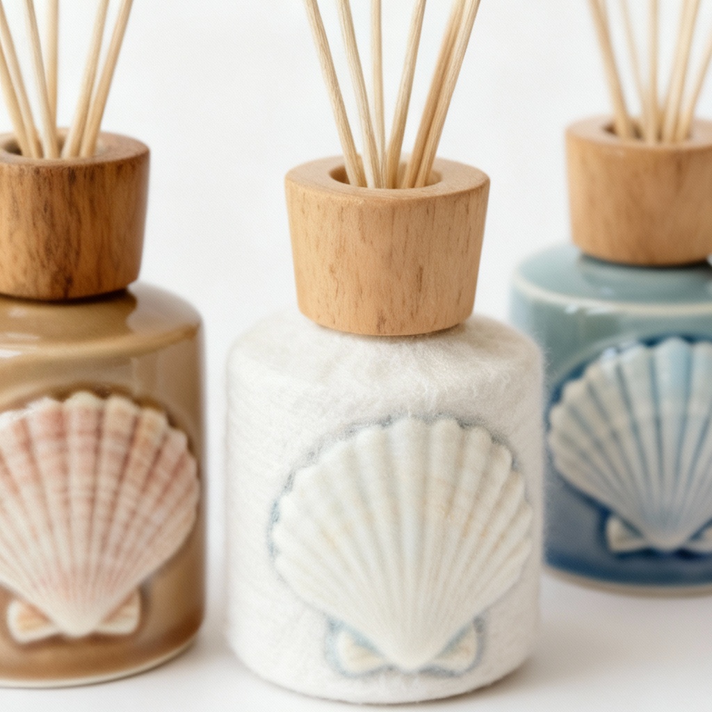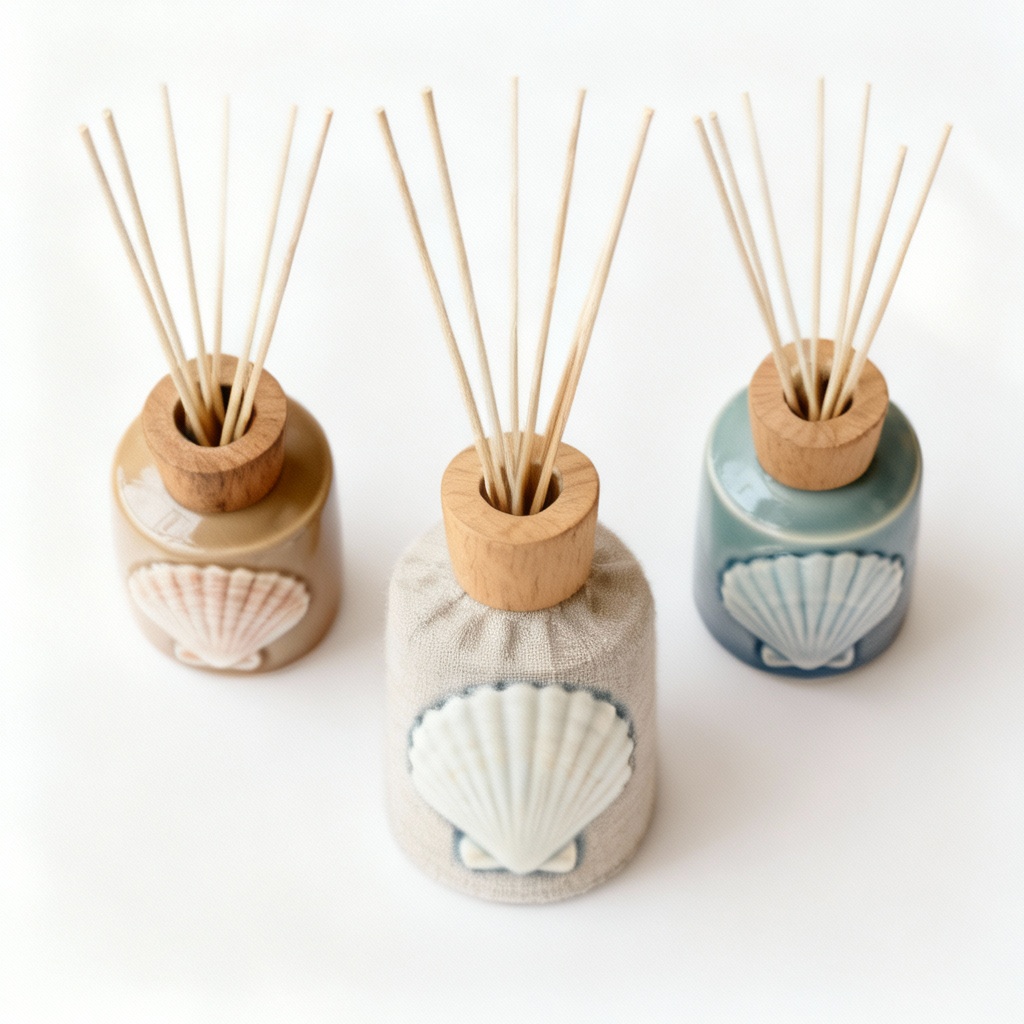 Seaside Ceramic Closet Fragrance Diffusers – Coastal Shell Design, Set of 3